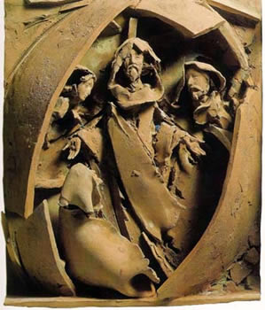 (...) Gesù in persona apparve in mezzo a loro e disse. ‘Pace a voi!". Stupiti e spaventati, credevano di vedere un fantasma. Ma egli disse. Perché siete turbati, e perché sorgono dubbi nel vostro cuore? Guardate le mie mani e i miei piedi: sono proprio io! Toccatemi (...).